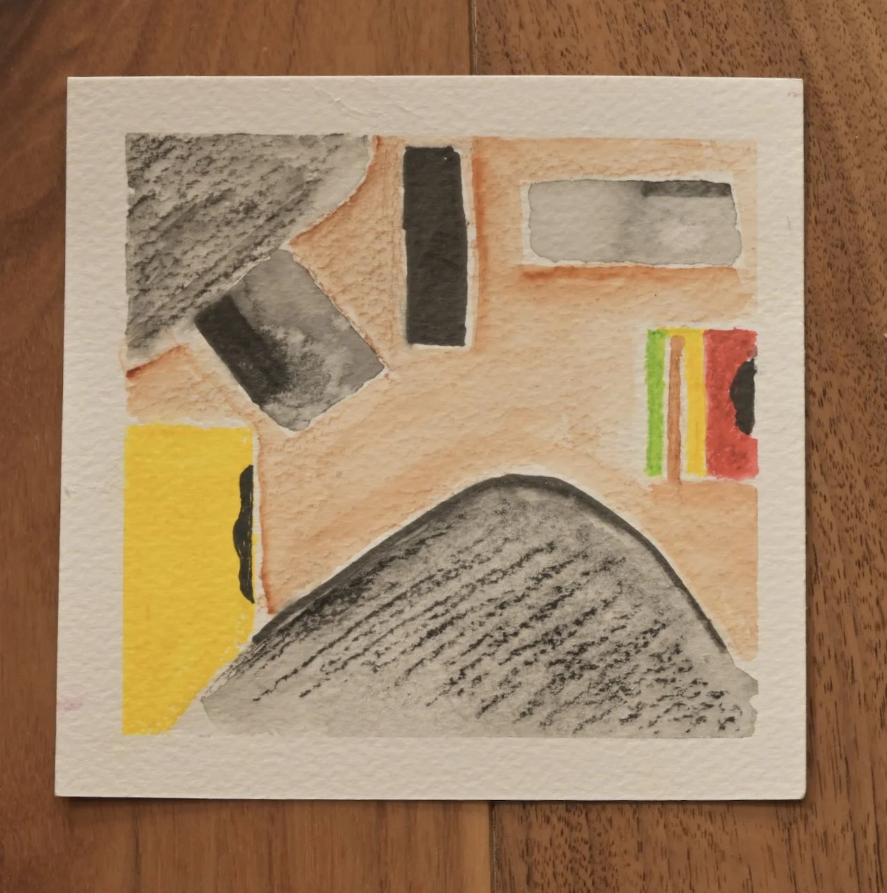 " Le Courbusier's Licorice Allsorts" 12cm x 12.5 cm mixed media on paper
